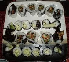 That's the sushi- cucumber rolls and tempura asparagus rolls.